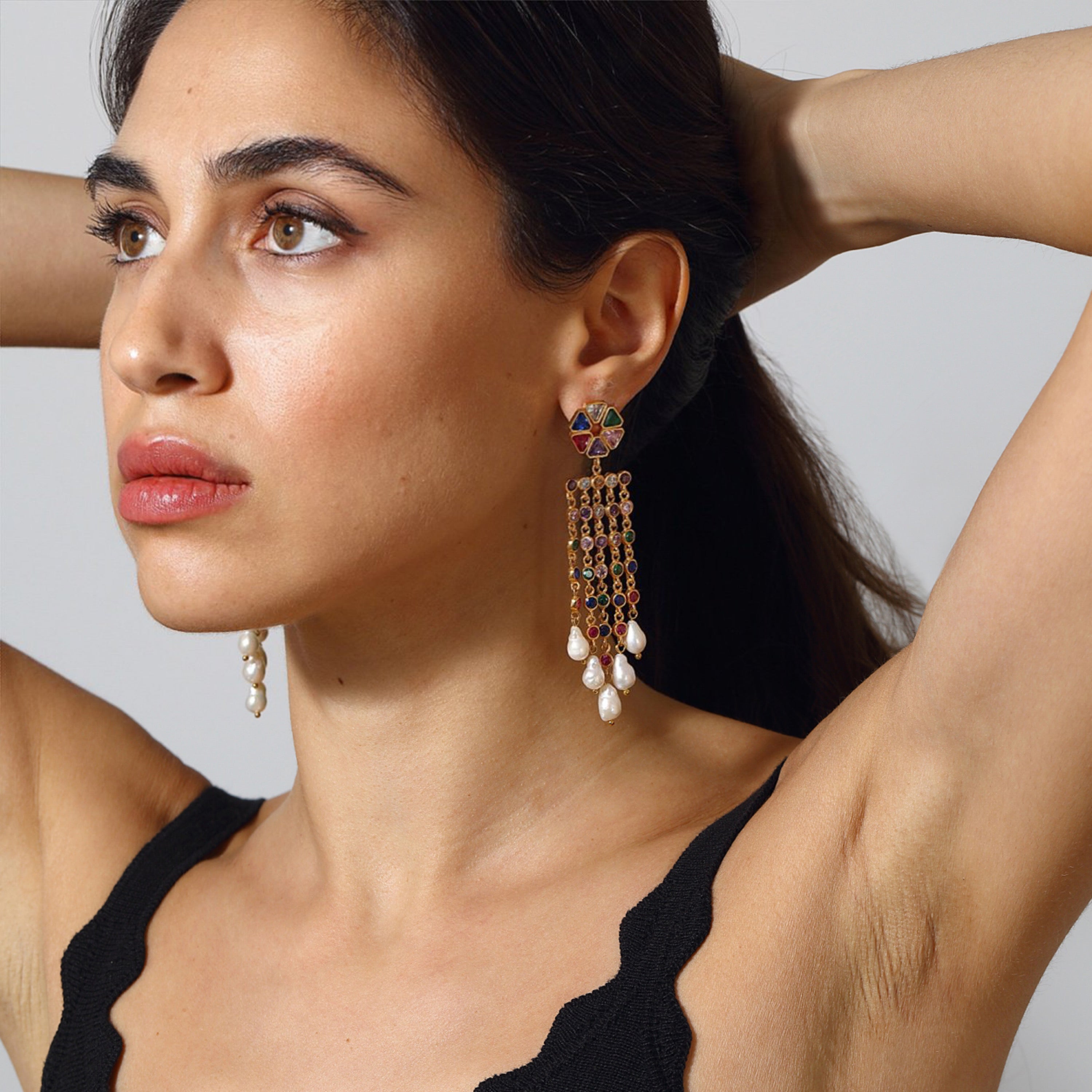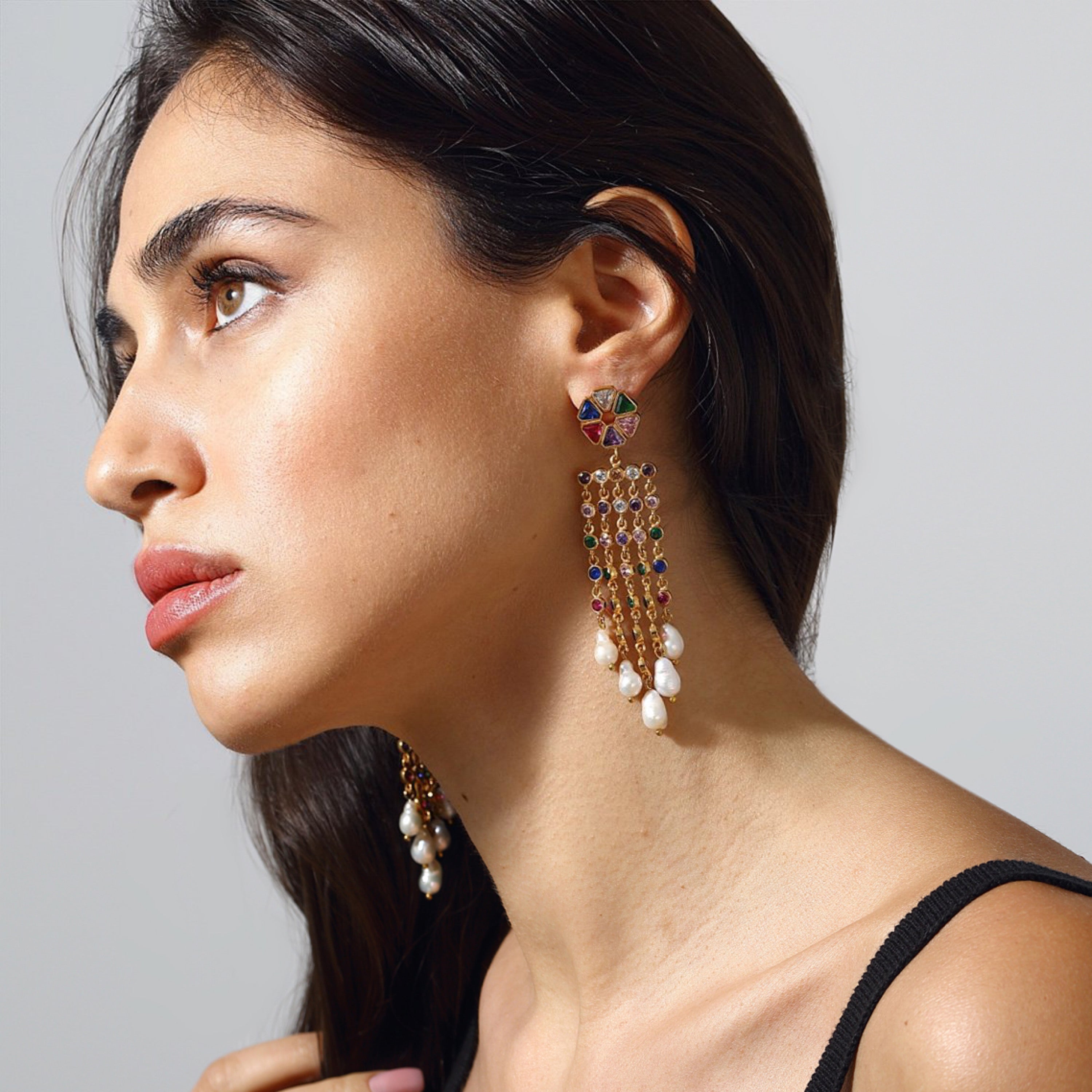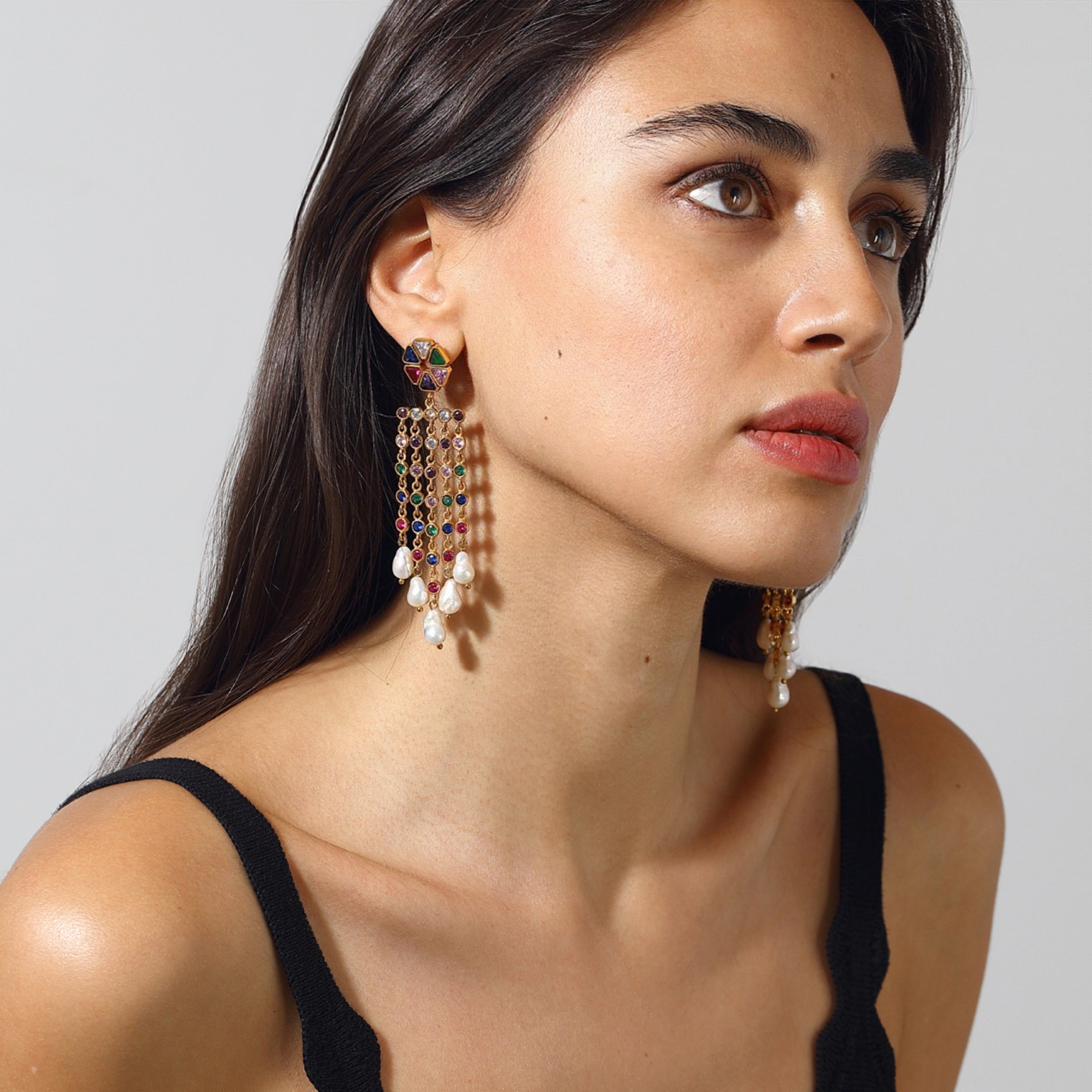 - Handcrafted with 24k Gold plated brass embellished with swarovski stones and pearls