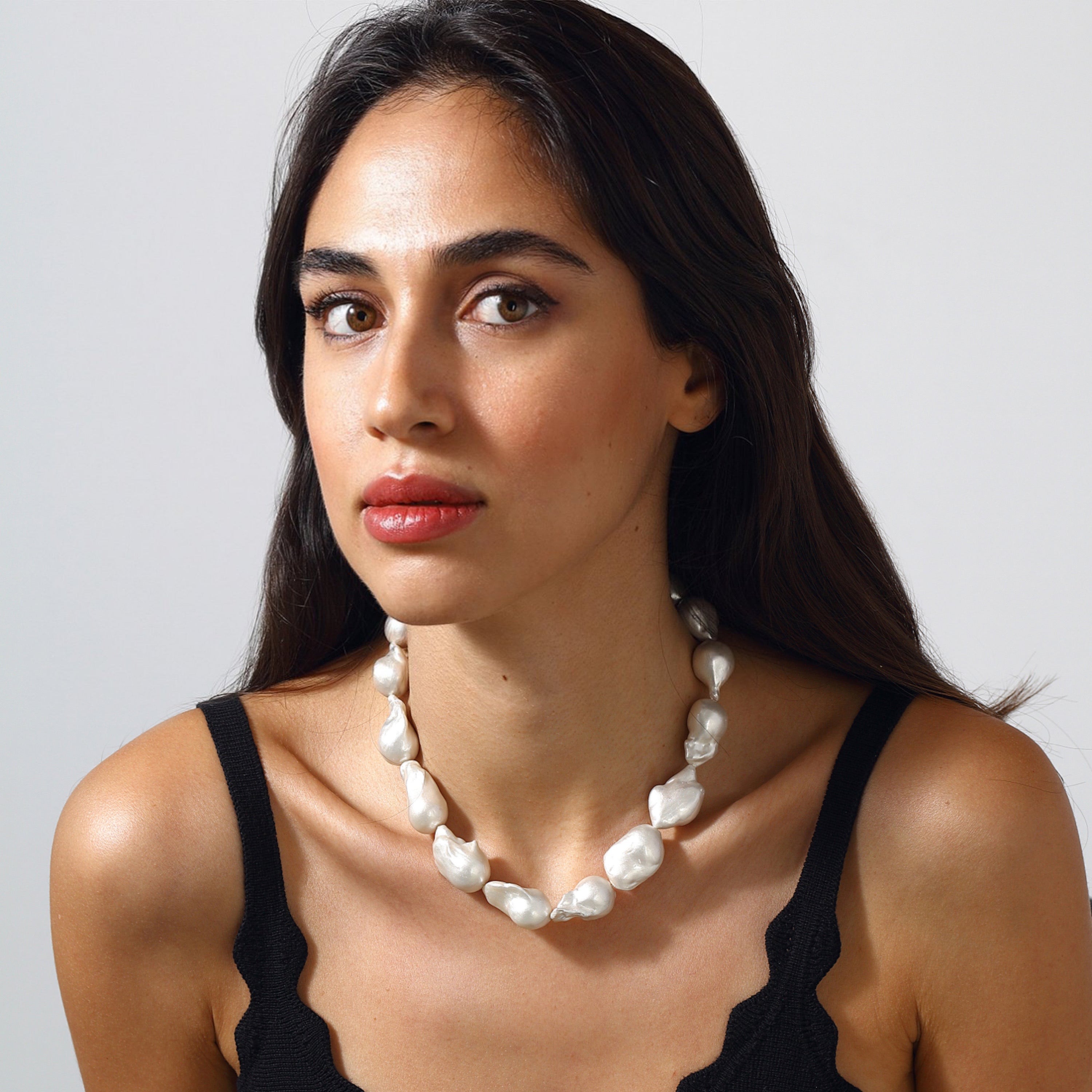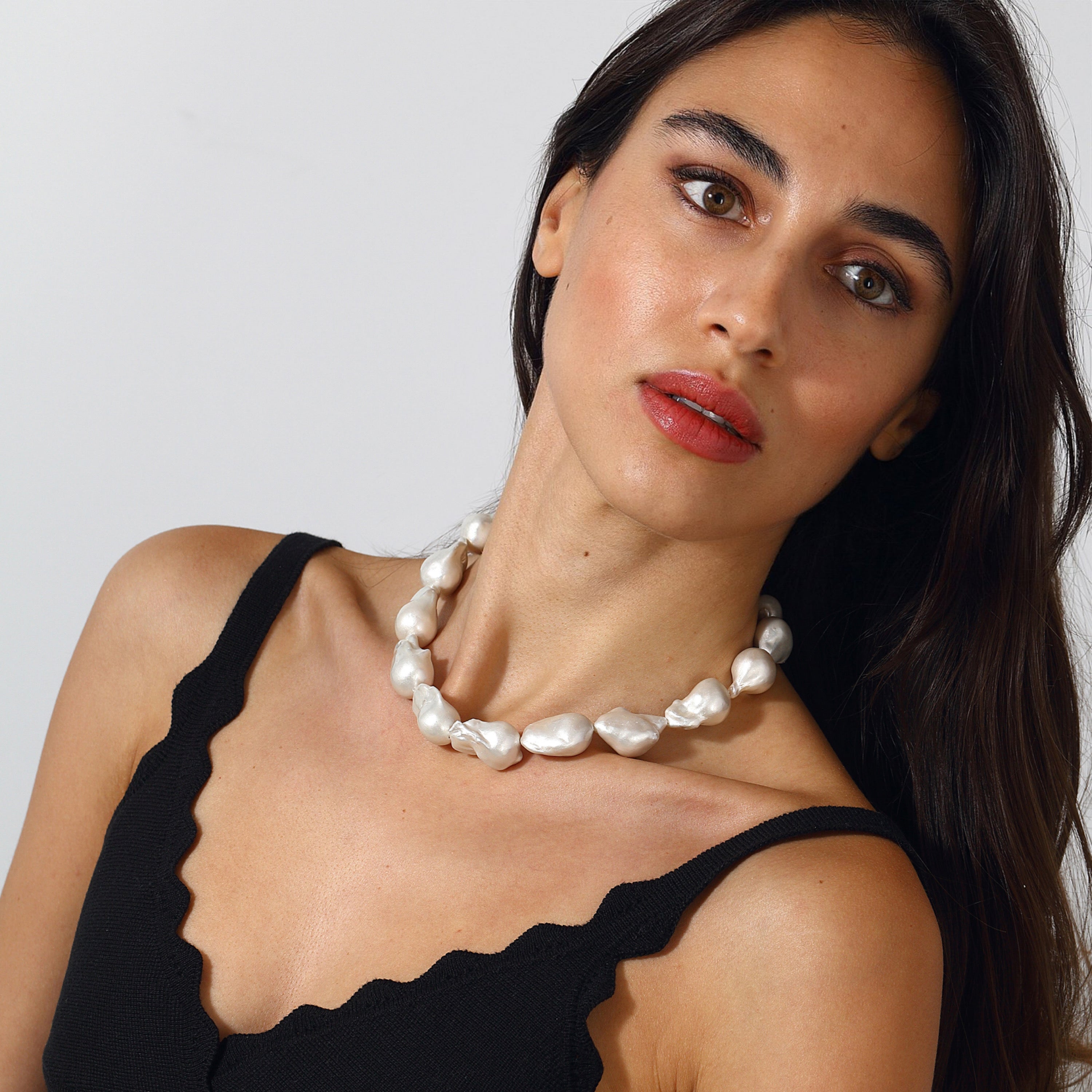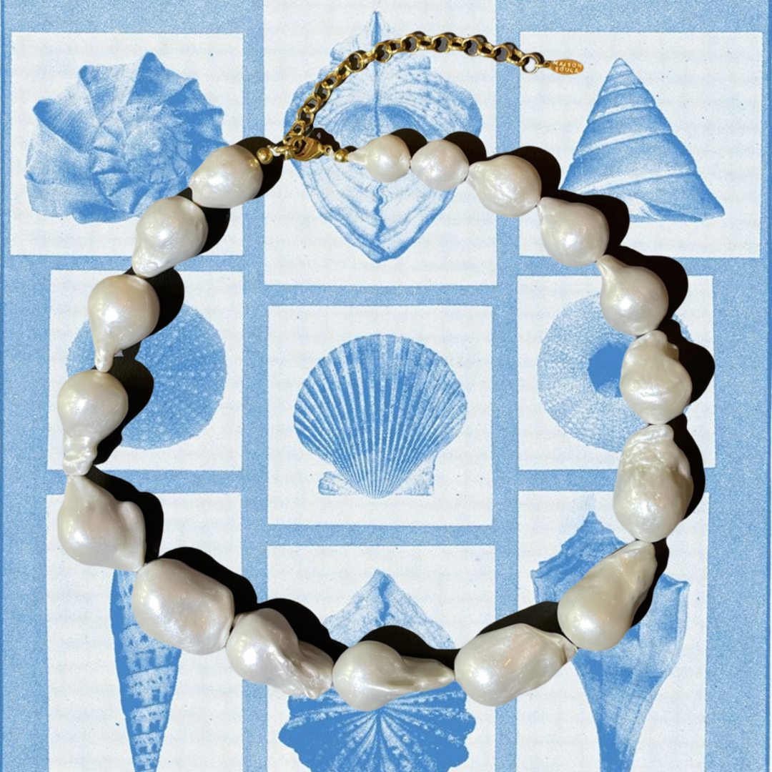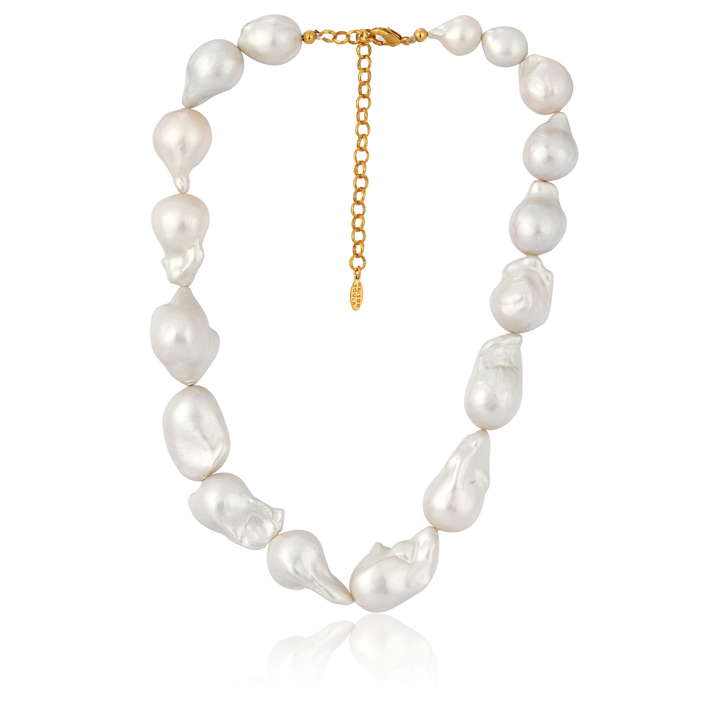 - Handcrafted from large cultured freshwater baroque pearls with 24k Gold plated brass extension and clasp