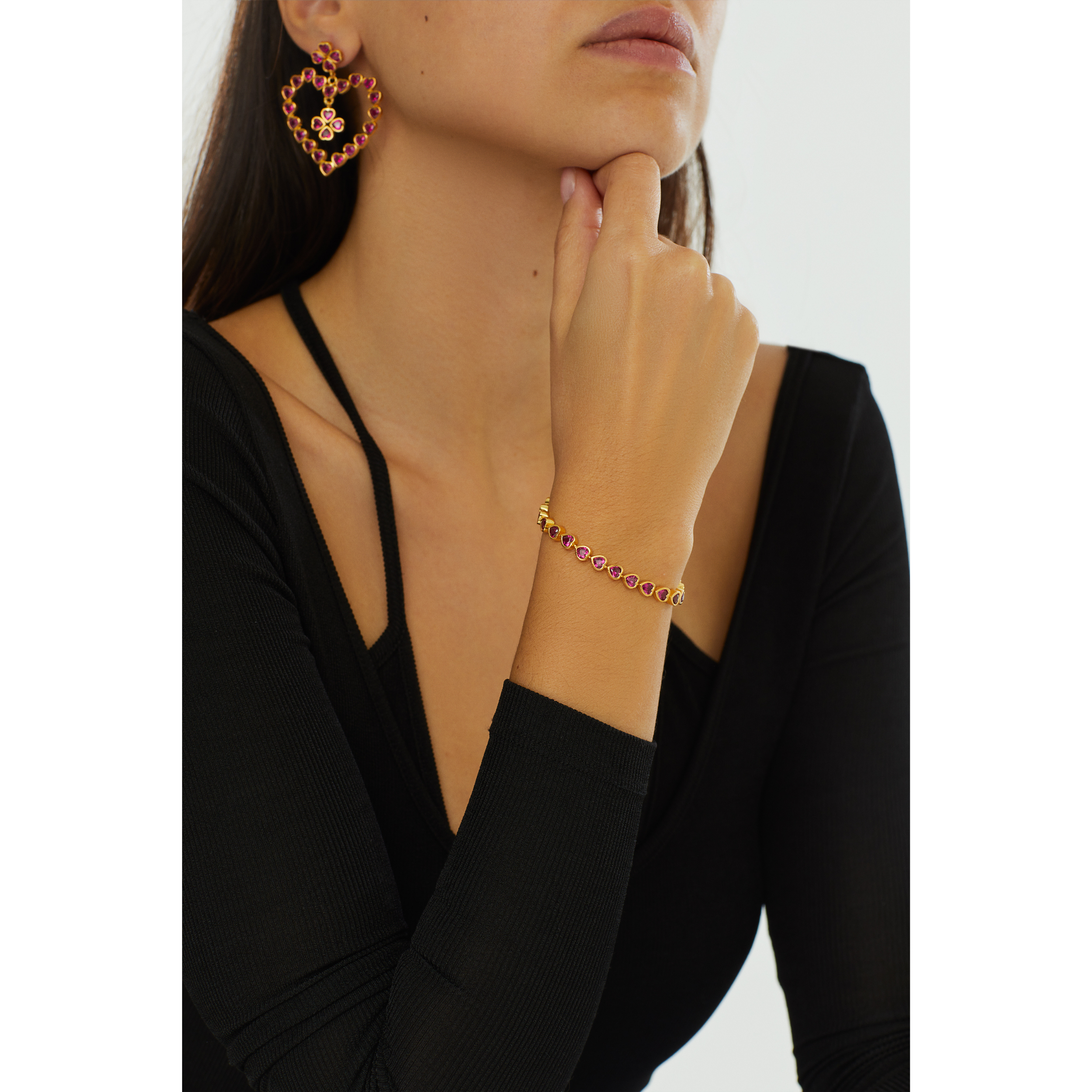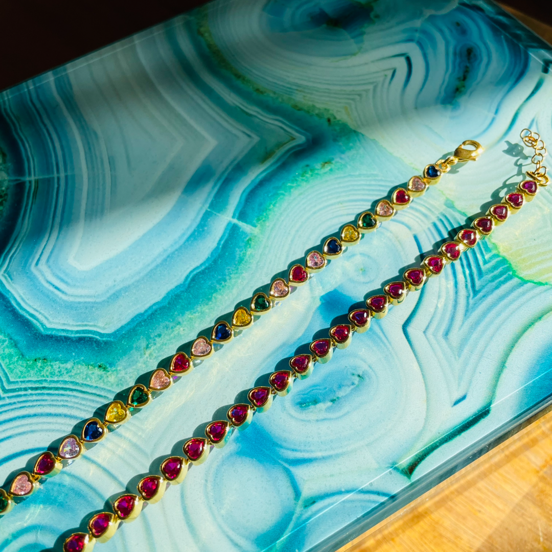 Many Tiny Hearts Tennis Bracelet - Vibrant Pink