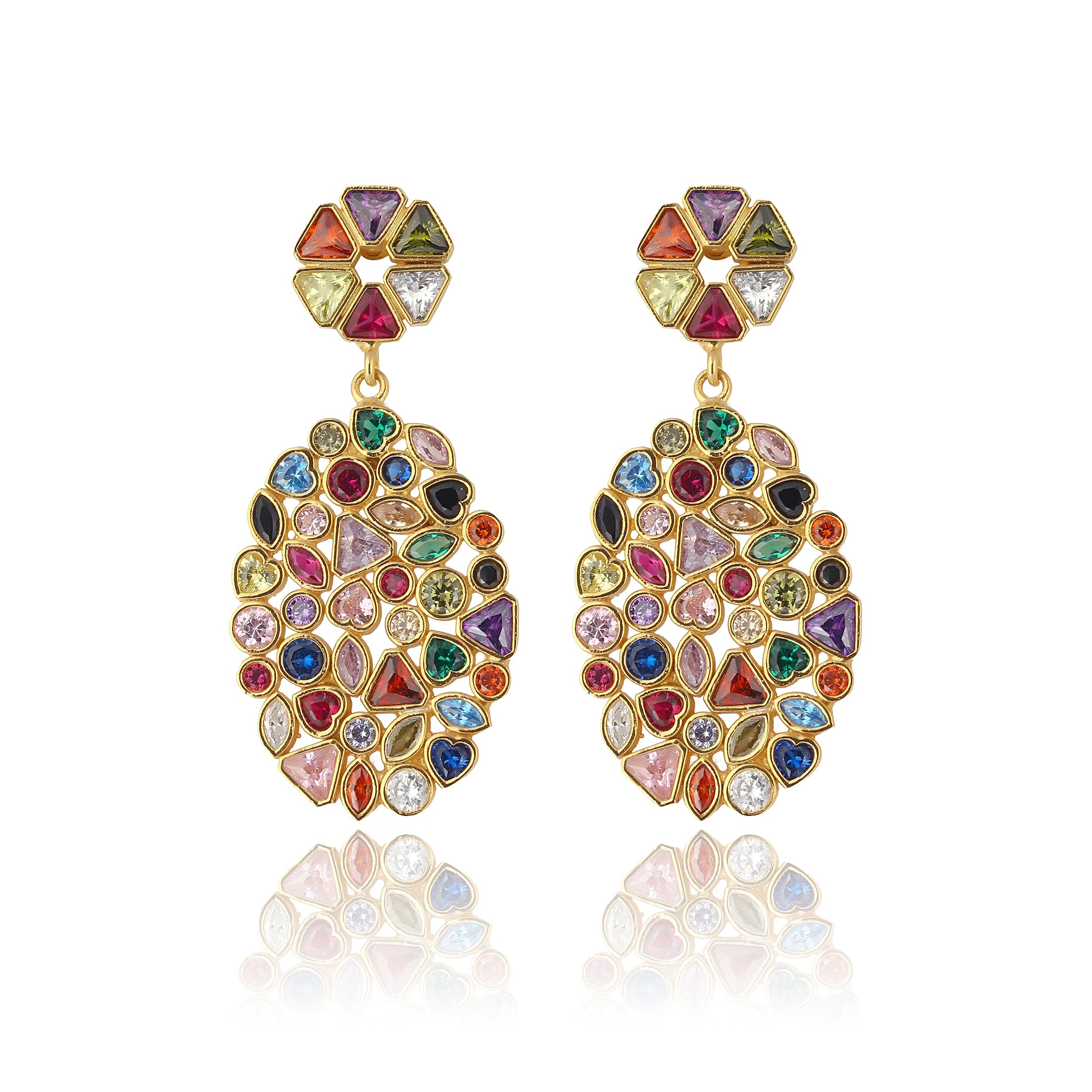- 24K altın kaplama bronz üzerine yerleştirilmiş renkli kristal taşlar